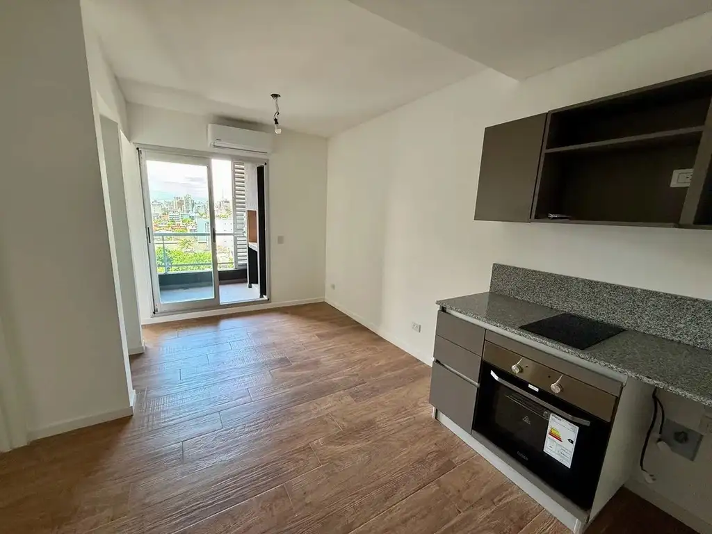 Apto crédito. Apto profesional. Departamento a estrenar de 2 ambientes, al contrafrente. 9º piso. Superficie total de 39m2, cubierta de 34m2 y descubierta de 5m2. Un dormitorio, un baño completo. Living-comedor, cocina eléctrica. Balcón con parrilla propia. Excelente estado, muy luminoso. Pisos de madera.