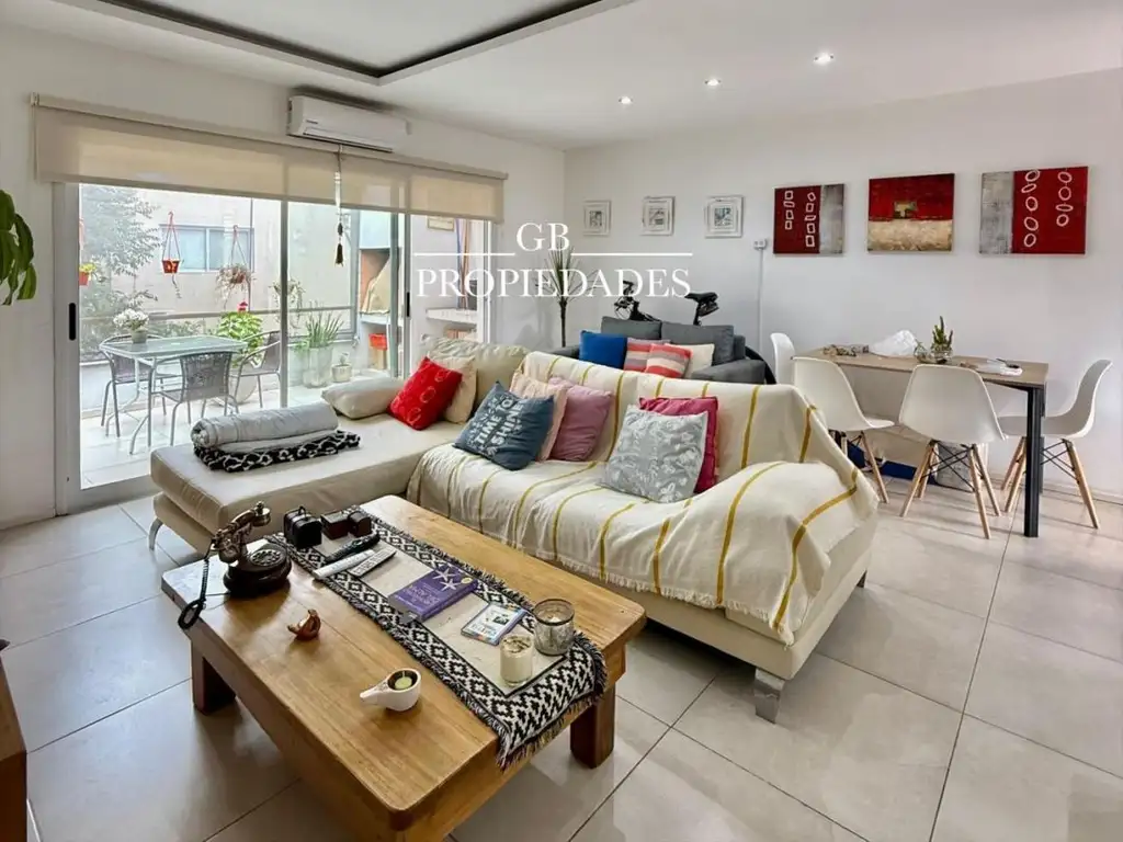 Al ingresar, se encuentra una cocina moderna integrada al living, con una barra desayunadora. El living es muy amplio, luminoso y cuenta con salida a un hermoso balcón aterrazado con espacio para lavadero y parrilla. El baño es completo, con ante baño, y lo comparten los dos dormitorios, ambos con placard y luminosos