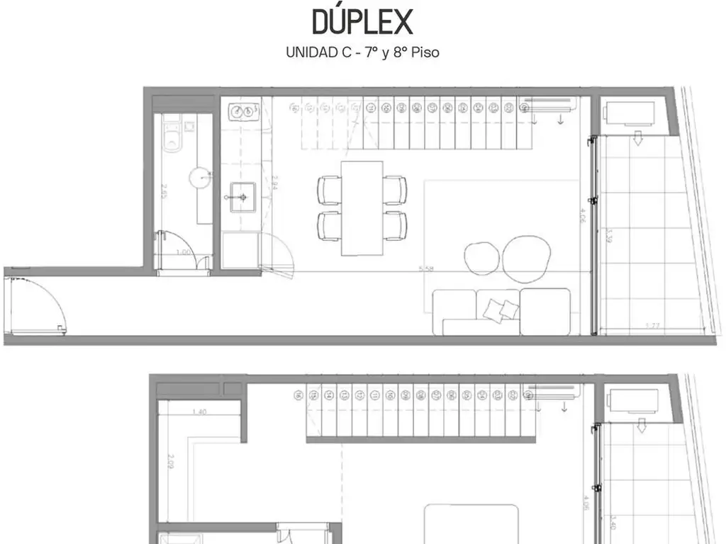 en 7mo piso: dos duplex de 2 amb y 1 depto de 2 amb,