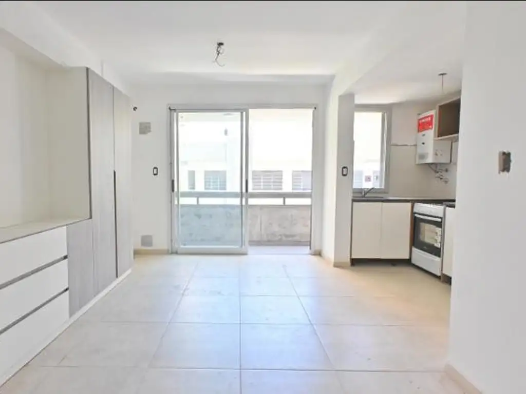 Descripción: Departamento monoambiente al frente. Cocina completo con alacenas y bajo mesadas. Baño Ferrum, aberturas doble vidrio, ventilación en todos los ambientes, pisos de porcelanato gris. Edificio con quincho y pileta.