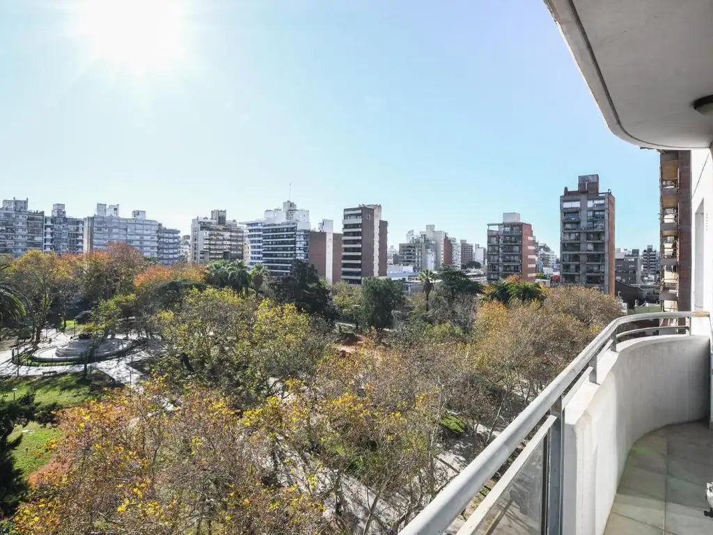 La unidad dispone de balcón al frente con orientación norte, con vista abierta hacia Plaza López, y un segundo balcón al contrafrente, lo que garantiza ventilación cruzada y buena luminosidad durante todo el día.