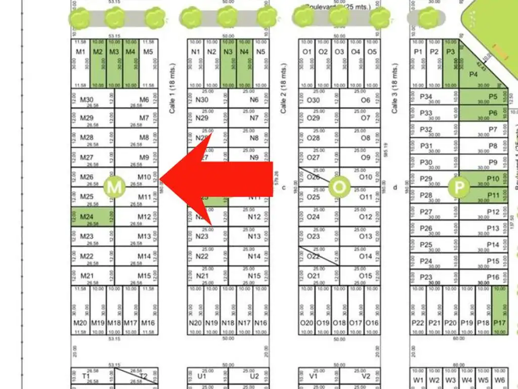 Lote M10, manzana M, presenta una superficie total de 318.96 M2, comprendidos por 12 metros de frente por 26.58 metros de fondo.