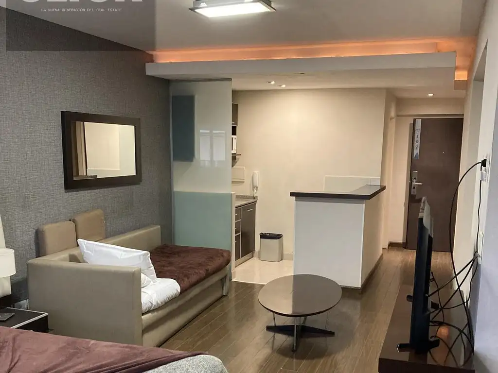 - Monoambiente amoblado y equipado (incluye 2 camas individuales, TV LED 32", mesa de comedor con 4 sillas, sillón cama, 2 mesas de luz, heladera bajo mesada, horno eléctrico, vajilla).