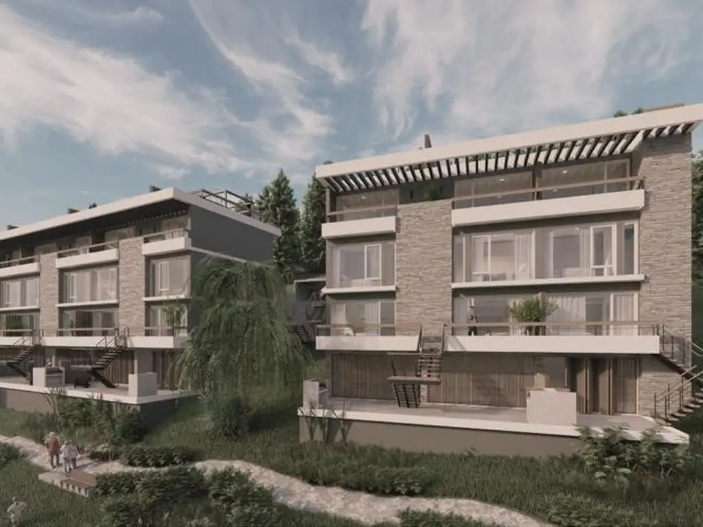 Departamento duplex con vista al lago Nahuel Huapi, Este dúplex en planta baja con vista al lago Nahuel Huapi se encuentra en el barrio Las Chacras, una zona en pleno desarrollo, ideal para quien busca disfrutar de la naturaleza y tranquilidad, a solo 15 minutos del centro de la ciudad y a 5 minutos del aeropuerto. Características: - Superficie total: 61,54 m² - Superficie cubierta: 51,82 m² - Superficie semicubierta (deck): 4,44 m² - Superficie descubierta (jardín): 17,59 m² Distribución: - Planta Alta: - 1 habitación - Baño completo con bañera - Planta Baja: - Cocina integrada - Living-comedor - Toilette - Deck con parrilla de 4,44 m² - Jardín de 17,59 m² Calidad Constructiva: En cuanto a los materiales constructivos, las fachadas del edificio están compuestas por un núcleo de piedra en las paredes externas, y el resto revestidas con Revear o simil. -Posee estructura con columnas y losas de hormigón armado. En cuanto a las terminaciones cuenta con pisos de porcelanato, barandas de madera con parantes de hierro. cerramientos de PVC con vidrio doble. - Entrega estimada: 2027 Sobre el Desarrollo - Ruta 40 del Este: El proyecto Ruta 40 al Este, se conforma por dos bloques de viviendas con 20 unidades funcionales en un terreno que cuenta con una superficie de 3930.31 m2 ubicado sobre la Ruta Nacional N° 40, Comandante Luis Piedrabuena, Barrio Costa del Sol. El conjunto se diseña en forma de tiras orientadas hacia el norte buscando el mejor asoleamiento. El bloque 1 más grande cuenta con 14 unidades funcionales y el Bloque 2 cuenta con 6 unidades funcionales. - Entrega estimada: 2027 Tipologías: - Departamentos de 2 ambientes: Con deck y parrilla de aproximadamente 18 m². - Departamentos de 3 ambientes: Con terraza y parrilla de entre 31 m² y 37 m². En cumplimiento de las leyes provinciales vigentes que regulan el corretaje inmobiliario, Ley Nacional 25.028, Ley 22.802 de Lealtad Comercial, Ley 24.240 de Defensa al Consumidor, las normas del Código Civil y Comercial de la Nación y Constitucionales, todas las operaciones inmobiliarias son objeto de intermediación y conclusión por parte de la Martillera y Corredora Inmobiliaria colegiada Natalia Romina Lopez (Mat. 24 F° 25 T° XIV L° II - IIIa CJRN). La intermediación y la conclusión de las operaciones son llevadas a cabo por el profesional matriculado Natalia Romina Lopez (Mat. 24 F° 25 T° XIV L° II - IIIa CJRN). Cada Oficina es de Propiedad y Operación Independiente. En cumplimiento de las leyes provinciales vigentes que regulan el corretaje inmobiliario, Ley Nacional 25.028, Ley 22.802 de Lealtad Comercial, Ley 24.240 de Defensa al Consumidor, las normas del Código Civil y Comercial de la Nación y Constitucionales, todas las operaciones inmobiliarias son objeto de intermediación y conclusión por parte de la Martillera y Corredora Inmobiliaria colegiada Natalia Romina Lopez (Mat. 24 F° 25 T° XIV L° II - IIIa CJRN). La intermediación y la conclusión de las operaciones son llevadas a cabo por el profesional matriculado Natalia Romina Lopez (Mat. 24 F° 25 T° XIV L° II - IIIa CJRN). Cada Oficina es de Propiedad y Operación Independiente.