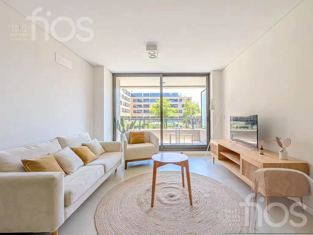La unidad se encuentra en el tercer piso y se destaca por un amplio balcón aterrazado en esquina, orientado hacia Av. Carballo y Av. Avellaneda, con exposiciones noreste y sureste. Esta configuración garantiza excelente iluminación natural, visuales abiertas y una experiencia interiorexterior de gran amplitud. Al ingresar encontrarás un espacio de escritorio, ideal para home office. Luego se desarrolla un estar comedor amplio y luminoso, con salida directa al balcón. La cocina semi integrada se conecta mediante una barra desayunadora y cuenta con un área de lavadero independiente, combinando funcionalidad y diseño.