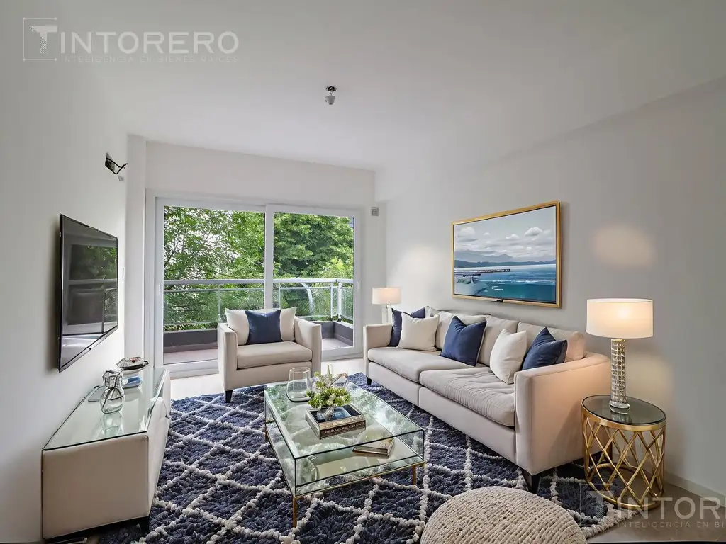 Al ingresar, la cocina se presenta equipada con muebles bajo mesada y alacena, mesada de granito, bacha de acero y cocina a gas de 4 hornallas con horno. Una cómoda barra desayunadora marca la transición hacia el living-comedor, un ambiente amplio y luminoso gracias a su gran ventanal, que conecta con un balcón ideal para disfrutar al aire libre.