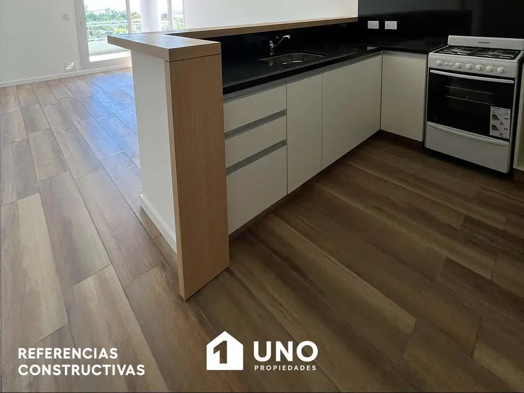 Compuesto por el estar/comedor con cocina integrada, completamente amueblada y barra desayunadora, el estar dispone de salida al balcón terraza al frente. Baño completo y 2 dormitorios con placares, 1 de ellos con un segundo baño en suite.