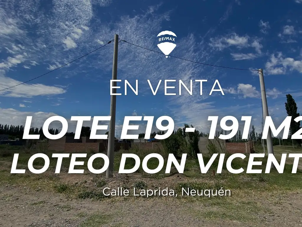 Equipo RE/MAX vende en exclusiva este lote de 191 m² en esquina (Lote E 19), ubicado en el desarrollo Don Vicente, en la ciudad de Neuquén Capital.