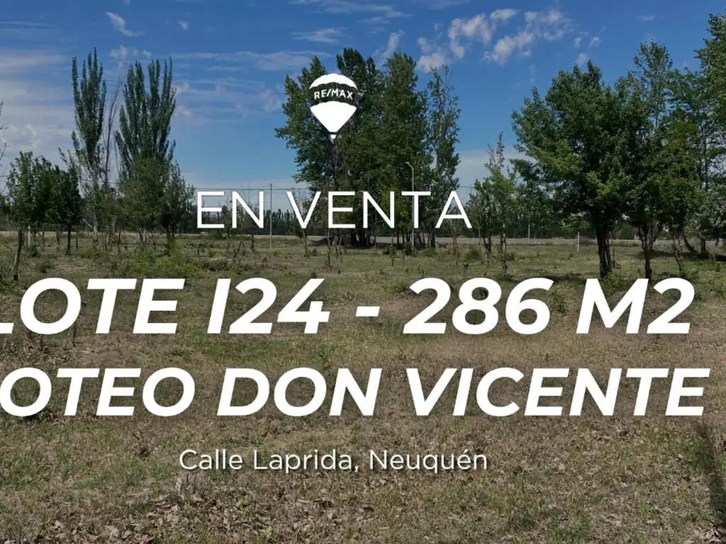Equipo RE/MAX vende en exclusiva este lote de 286 m² en esquina (Lote I 24), ubicado en el desarrollo Don Vicente, en la ciudad de Neuquén Capital.