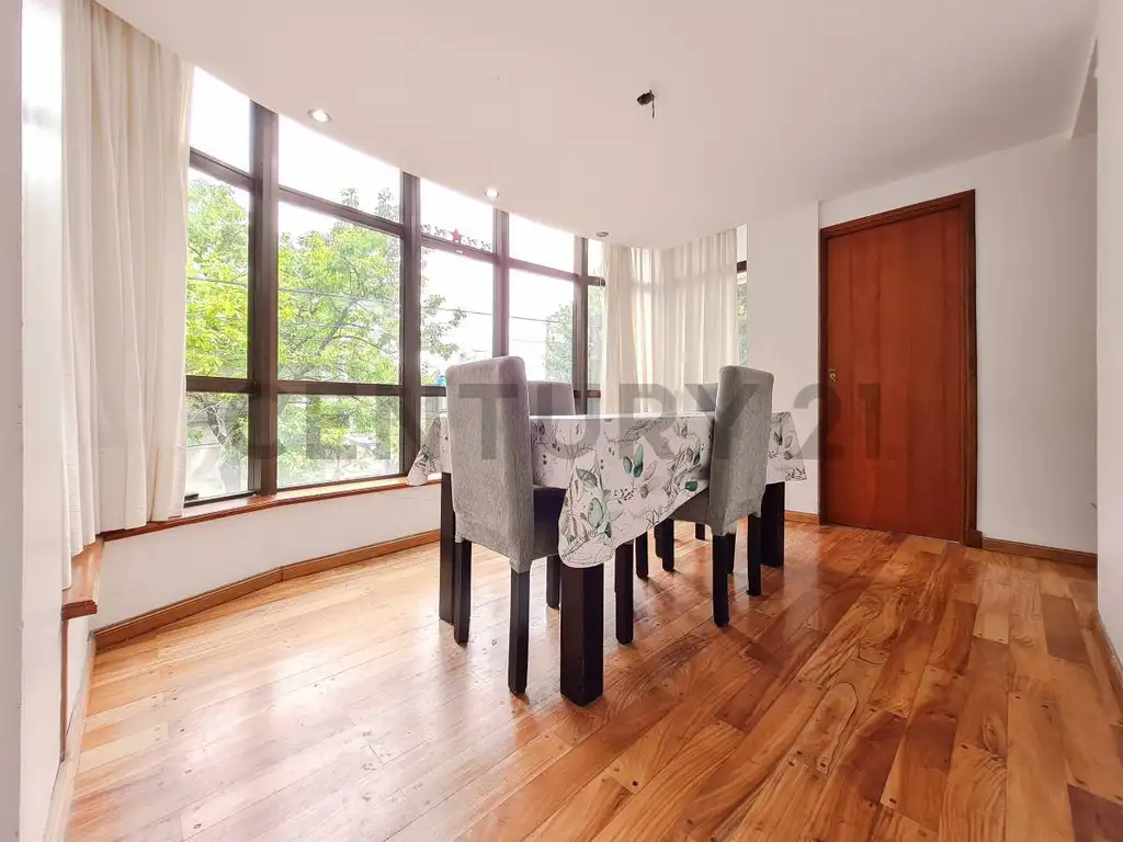Posee piso de madera tarugada Viraro, persianas de cedro en balcones y habitaciones, y aberturas blancas línea Modena. Además, el departamento incluye una cochera descubierta y se encuentra en un edificio exclusivo de solo cinco pisos, asegurando tranquilidad y privacidad.