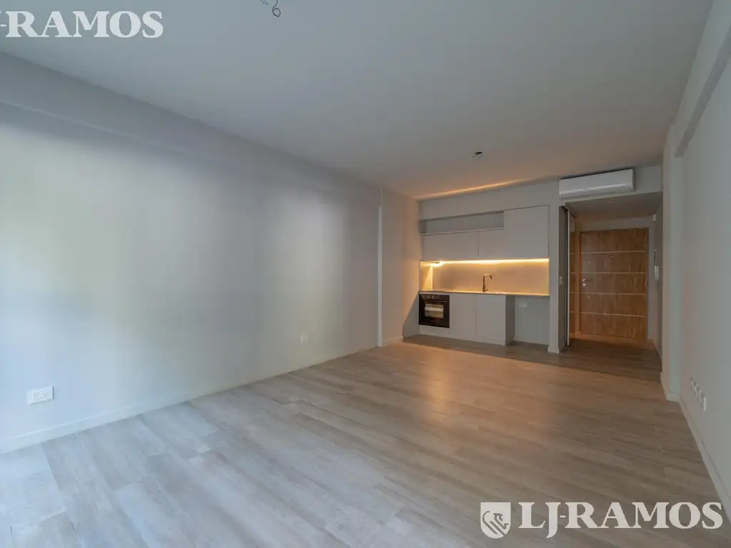 Pisos de porcelanato, ventanas de aluminio anodizado con doble vidrio hermético, mesadas de Silestone, anafe y horno eléctricos, puertas de placares y muebles de cocina bajo mesada y alacenas completos.