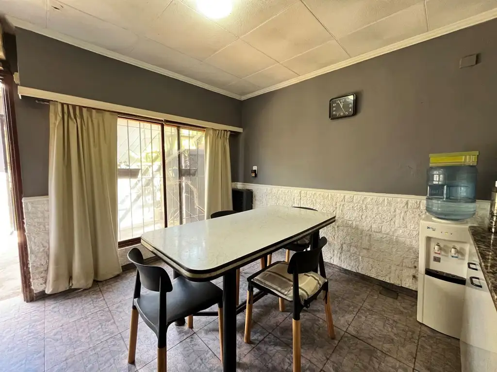 Se ofrece en venta una casa de 6 ambientes, APTA CREDITO. En la planta baja, la propiedad cuenta con dos locales o cocheras, perfectos para emprendedores o como espacio de estacionamiento. Además, dispone de dos habitaciones amplias y una cocina-comedor luminosa que se abre a un acogedor patio trasero, donde se encuentra un pequeño jardín verde que aporta un toque natural y fresco al ambiente. La galería semicubierta es perfecta para disfrutar de las tardes al aire libre, mientras que en el patio hay una escalera que conduce a una terraza equipada con parrilla, ideal para asados y reuniones familiares.