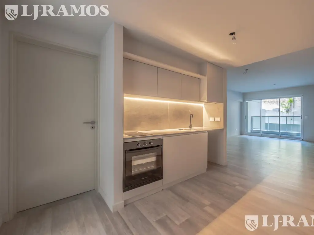Pisos de porcelanato, ventanas de aluminio anodizado con doble vidrio hermético, mesadas de Silestone, anafe y horno eléctricos, puertas de placares y muebles de cocina bajo mesada y alacenas completos.