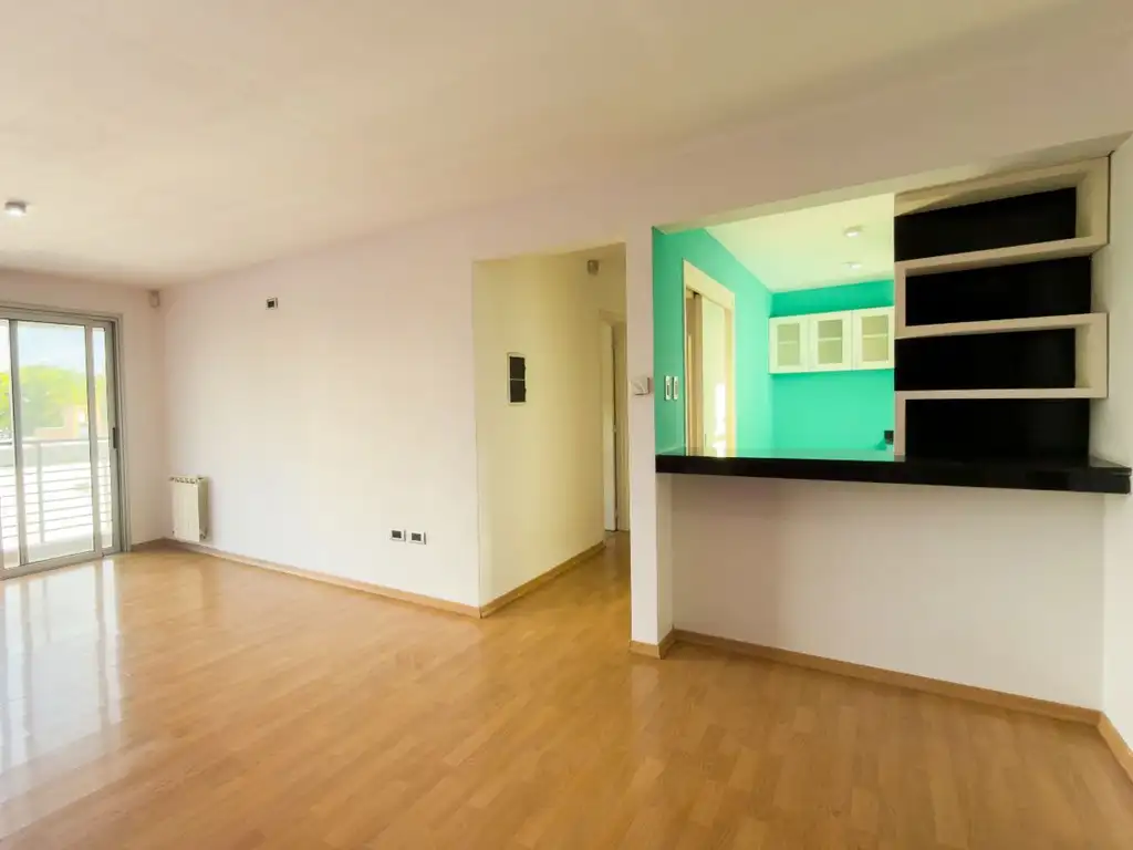 Departamento semipiso ubicado en segundo piso por ascensor. Al ingresar se encuentra el living - comedor, con puerta balcón de PVC y pisos de madera flotante. Cocina separada con espacio para el lavarropas. Dos dormitorios amplios con placard con interiores y aberturas de aluminio. Calefacción por radiadores en todos los ambientes con caldera dual. Puerta de ingreso blindada pentágono al ingresar a la propiedad. En el subsuelo se encuentra la cochera cubierta y la baulera.