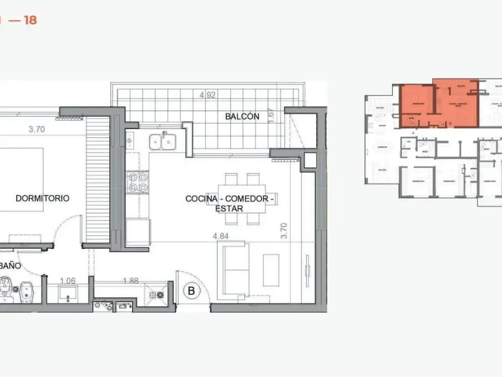 CARACTERíSTICAS DE LAS UNIDADES DE 1 DORMITORIO TIPOLOGíA "B":