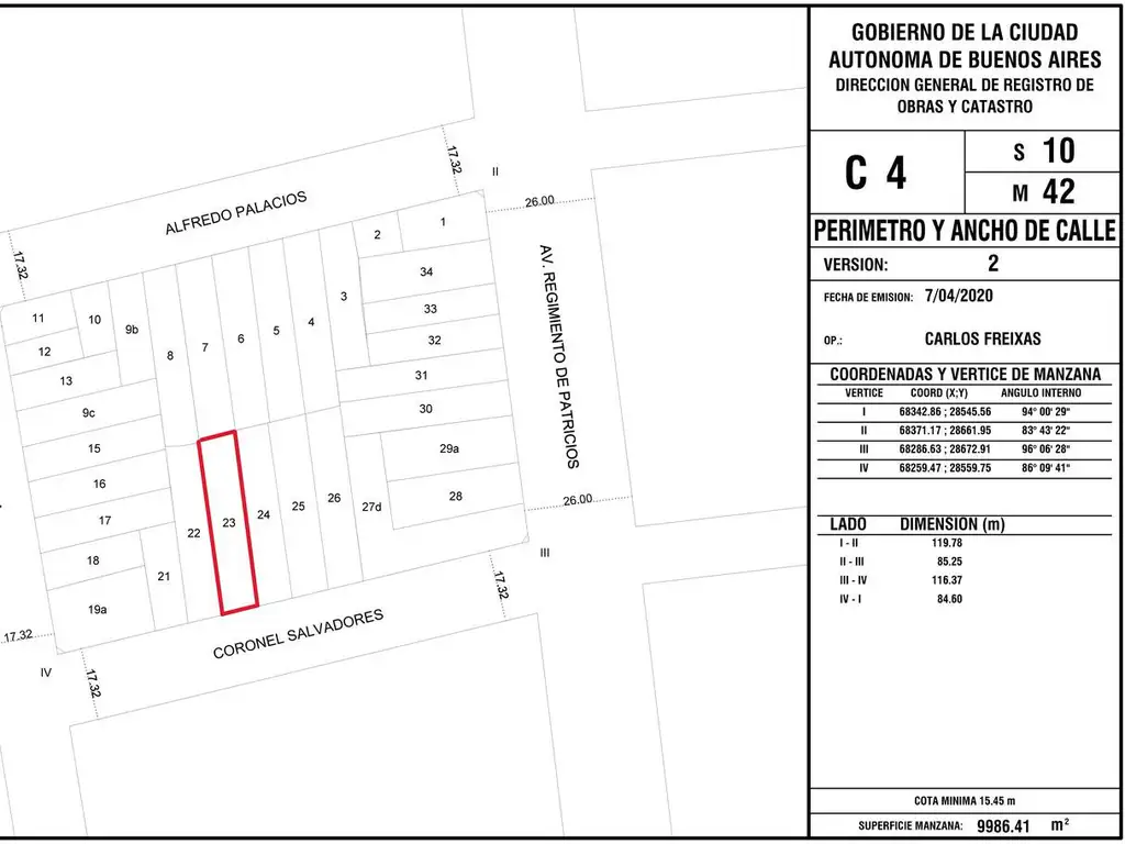 Ubicado sobre Coronel Salvadores 1359, en pleno corazón de Barracas, este lote presenta un altísimo potencial constructivo en uno de los barrios con mayor crecimiento y renovación urbana de los últimos años. Su localización estratégica lo convierte en una excelente opción para proyectos residenciales o mixtos orientados a la creciente demanda habitacional del sur de la ciudad.