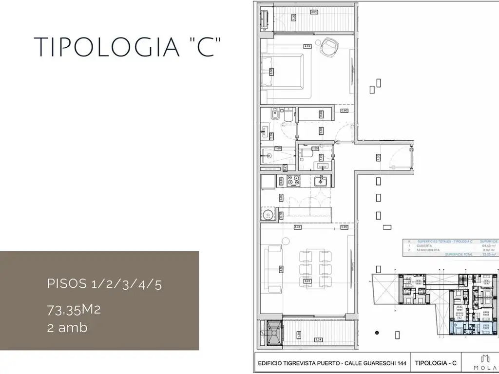 Presentamos la Tipología "C", la unidad más grande y exclusiva dentro de los 2 ambientes del proyecto Edificio TIGREVISTA PUERTO