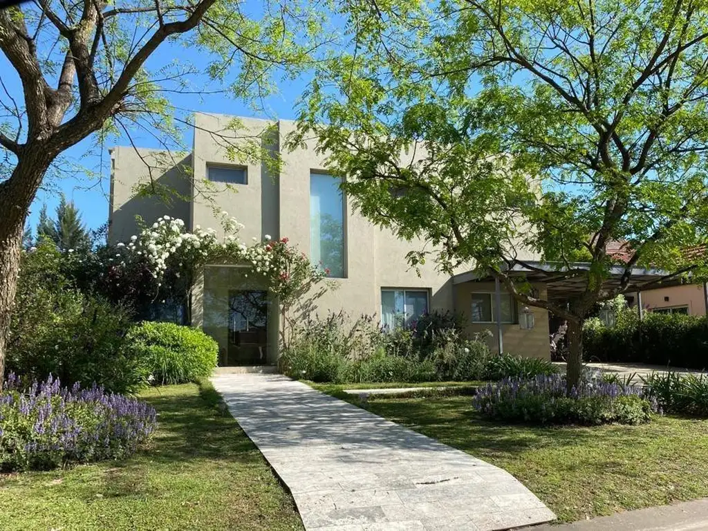 Muy linda casa en Barrio Cerrado San Agustín en Villanueva. Tiene 250 m2 aprox, 850 m2 de lote de orientación Noroeste, totalmente parquizado con plantas de más de 2 metros lo que da una gran privacidad. Además, el lote da a otro barrio cerrado, por lo que la cortina de árboles da un amplio márgen adicional con el vecino. Todo el jardín tiene riego automatizado. Pileta de 8x4, con filtro automático, revestida de venecitas, con solárium, sombrilla grande y 4 reposeras. Juego de niños, hamaca y cama elástica. Cochera semi-cubierta para 1 camioneta y 1 auto chico, y descubierta para 2 autos más. La casa es muy cómoda y súper luminosa, en 2 plantas.