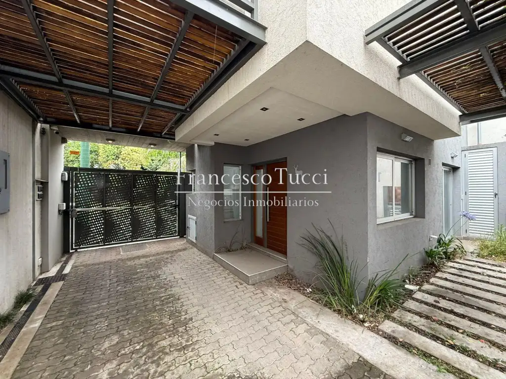 La unidad cuenta con entrada cubierta para un auto, amplio living comedor, cocina semi integrada totalmente equipada, jardín pequeño con parrilla, toilette, en planta alta dos dormitorios con frente de placard, estufas tiro balanceado y pre instalación de aire acondicionado, baño completo, además cuenta con una terraza propia.