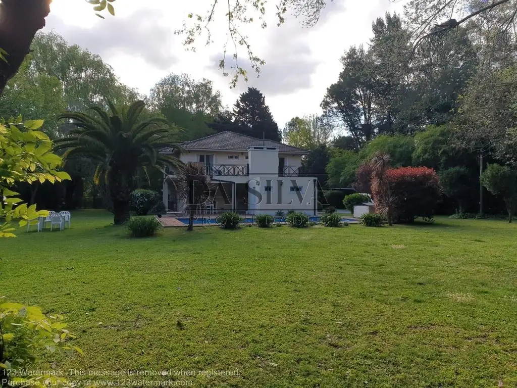 En un terreno de 2741 m2 de superficie se halla esta preciosa y moderna casa rodeada de un parque con añosos árboles y variados arbustos. Piscina con solarium. Galería abierta con parrilla. depósito de guardado y baño.