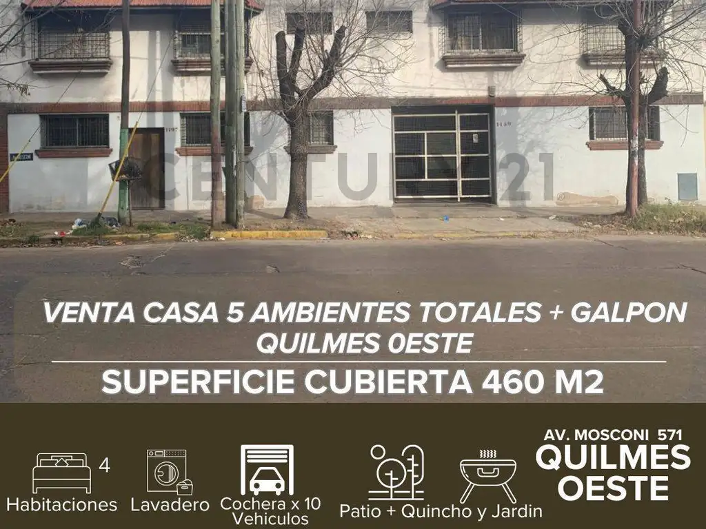 VENTA CASA 5 AMBIENTES TOTALES + GALPON QUILMES