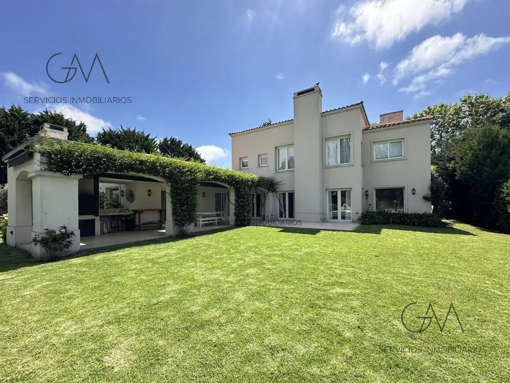 Casa de 6 ambientes. Superficie cub. + semicubierta: 350 mts.2. En Planta Baja: Gran living comedor. Cocina comedor diario. Sala de t.v Toilette. 1 dormitorio en suite. Dependencia de servicio con baño. En Planta Alta: Dormitorio principal en suite. Dos dormitorios. Baño completo. Terraza.
