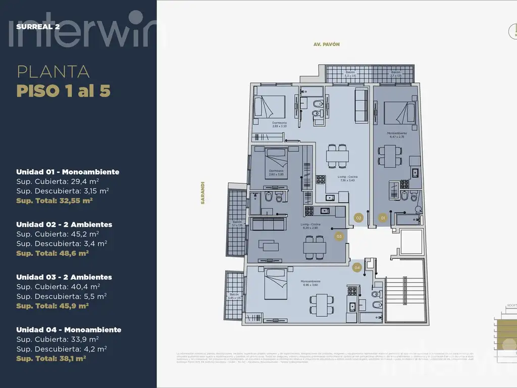 Todas las imágenes, planos, descripciones, y características indicadas son meramente referenciales e ilustrativas y podrán ser modificadas sin previo aviso. Las superficies indicadas son estimadas. Las superficies y medidas definitivas surgirán del plano de mensura final aprobado oportunamente por el GCBA. Las fechas de inicio de obra o posesión son estimadas, podrán ser reprogramadas por la Dirección de obra y dependerán a su vez de un proceso de aprobaciones municipales u otros organismos intervinientes. Los precios indicados podrán modificarse sin previo aviso. El interesado deberá realizar las verificaciones respectivas previamente a la realización de cualquier operación, requiriendo por sí o sus profesionales las copias necesarias de la documentación que corresponda.