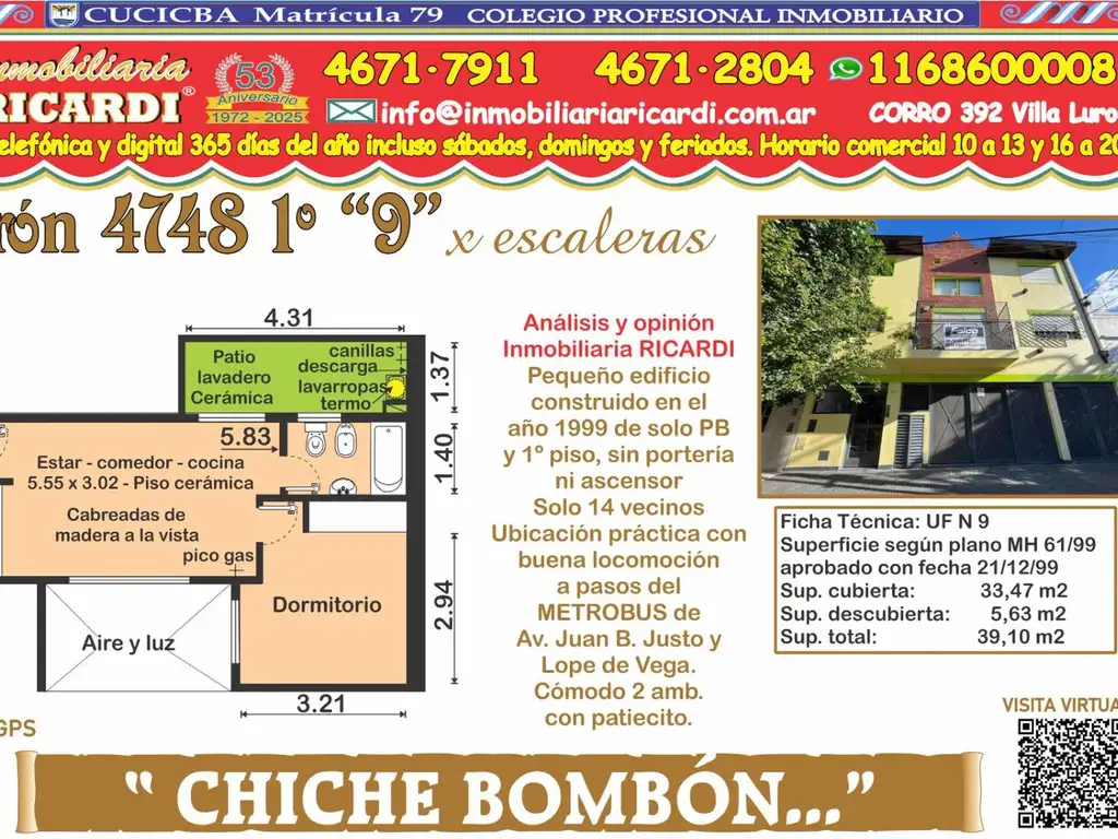 se comunique telefónicamente dentro del HORARIO COMERCIAL de Inmobiliaria RICARDI atendemos los 365 días del año siempre de 10 a 13 y 16 a 20 horas incluso sábados domingos y feriados