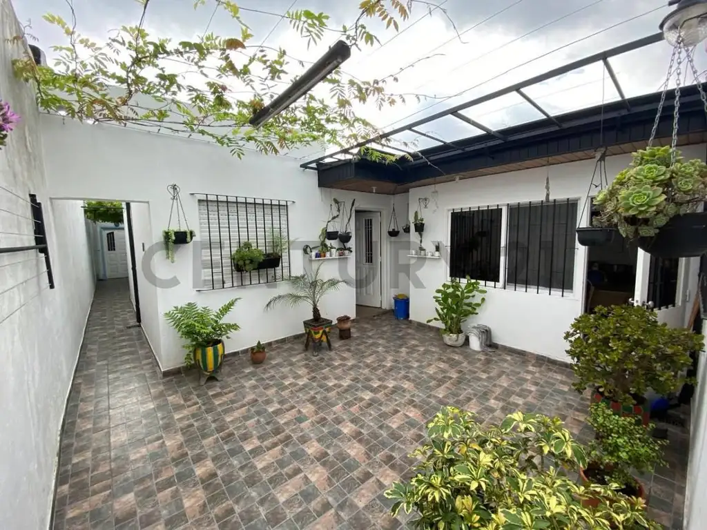 Uno de los aspectos más atractivos de la propiedad es su distribución en el exterior. Un patio conecta la casa principal con un departamento independiente, que cuenta con dos dormitorios, un living comedor con cocina integrada y un baño con ducha. Este departamento, gracias a su acceso independiente por un pasillo lateral, es ideal para que dos familias puedan convivir en el mismo espacio pero con total independencia, o para ser utilizado como una fuente de ingreso extra si se decide alquilar.