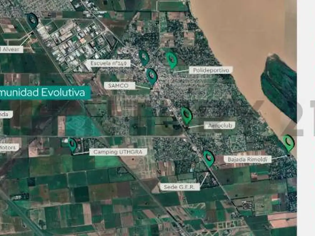 Ubicación: A quince minutos de Rosario; fácil acceso desde la Ruta Provincial 21 y la Autopista Rosario- Bs As.