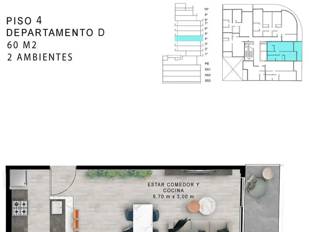 La información, planos, medidas, superficies, espacios, designación de unidades, imágenes, descripción y especificaciones técnicas constructivas son entregadas por el constructor/ propietario y representan material preliminar al solo efecto ilustrativo e informativo de las características del inmueble, pudiendo estar sujetas a variación y/o ajustes, sin previo aviso. Las superficies son en base al criterio de medición de obra, en las que se incluyen espesores de los muros medianeros y las carpinterías. Todas las imágenes, videos, maquetas, planos, mobiliario y decoración presentadas en el material comercial son perspectivas artísticas del emprendimiento, han sido incluidas a título ilustrativo y no contractual.