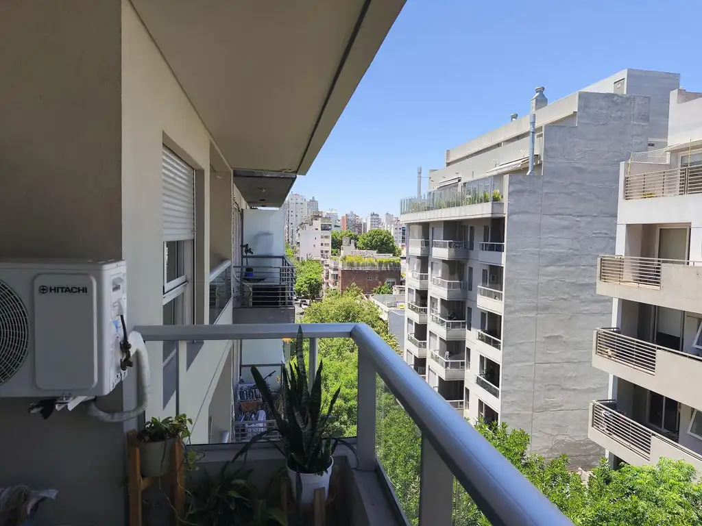 La unidad se desarrolla al frente, con excelente luminosidad, y cuenta con 46 m2 totales (41 m2 cubiertos + 5 m2 de balcón semicubierto). Originalmente era un monoambiente amplio, al cual se le incorporó una pared, transformándolo en un cómodo 2 ambientes, con muy buena distribución.