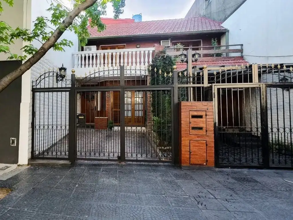 Apto crédito. PH de 5 ambientes, al frente en PB. Superficie total de 265m2, cubierta de 185m2 y descubierta de 80m2. Cuatro dormitorios, tres baños (dos completos y un toilette). Living-comedor, cocina. Patio, amplio quincho con parrilla, lavadero, terraza y altillo. Muy buen estado, luminoso.