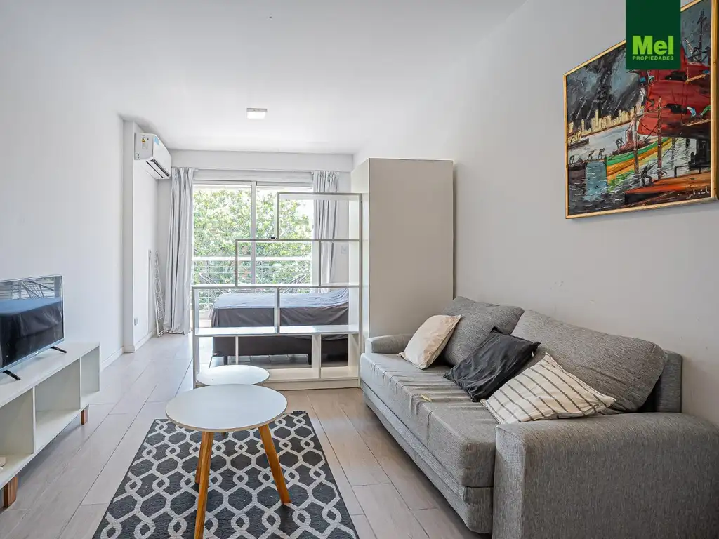 La unidad cuenta con un mueble divisorio que permite diferenciar el sector dormitorio del estar, brindando mayor funcionalidad y privacidad. Ambiente luminoso con salida a balcón, cocina integrada de diseño moderno y excelentes terminaciones.