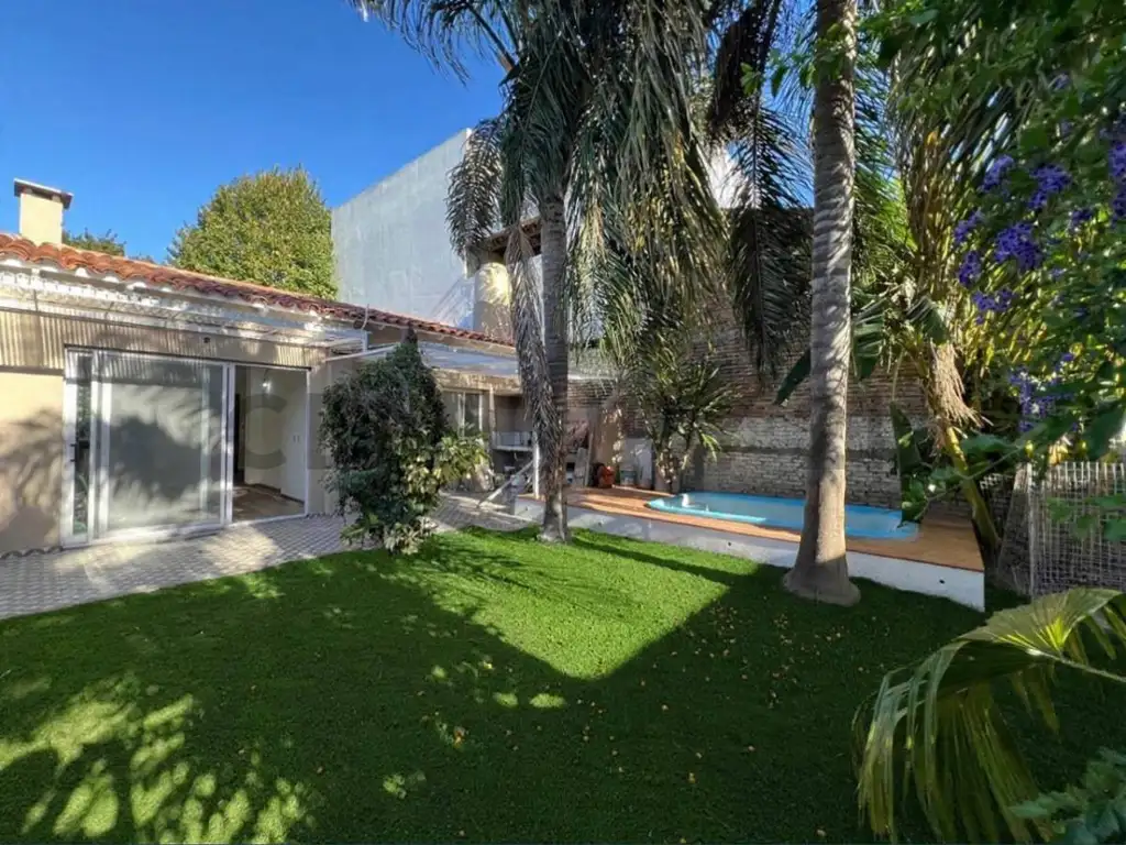 Pileta con deck solarium, ducha, jardin parquizado y fogonero.