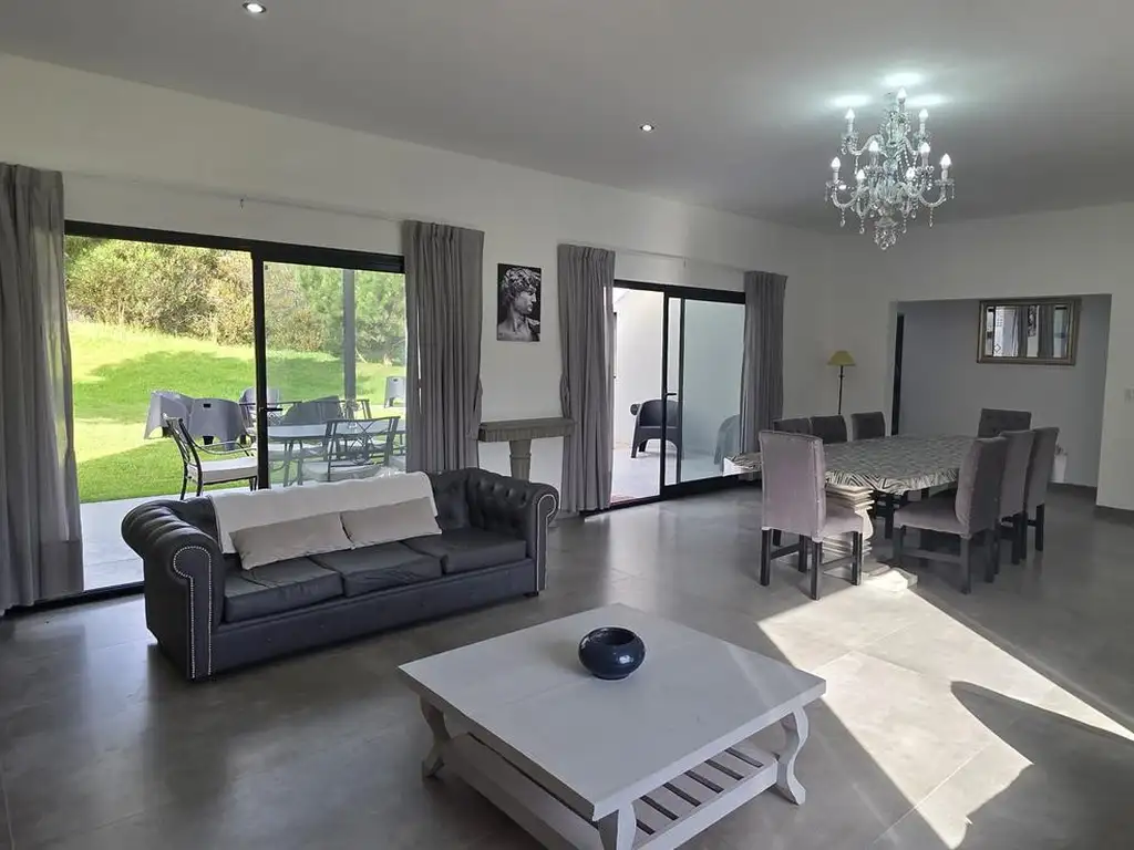*Amplio salón comedor, con una gran mesa para 8 comensales, 2 cómodos sofás en juego con una mesa de vidrio, televisión, calefacción por gas y aire acondicionado.