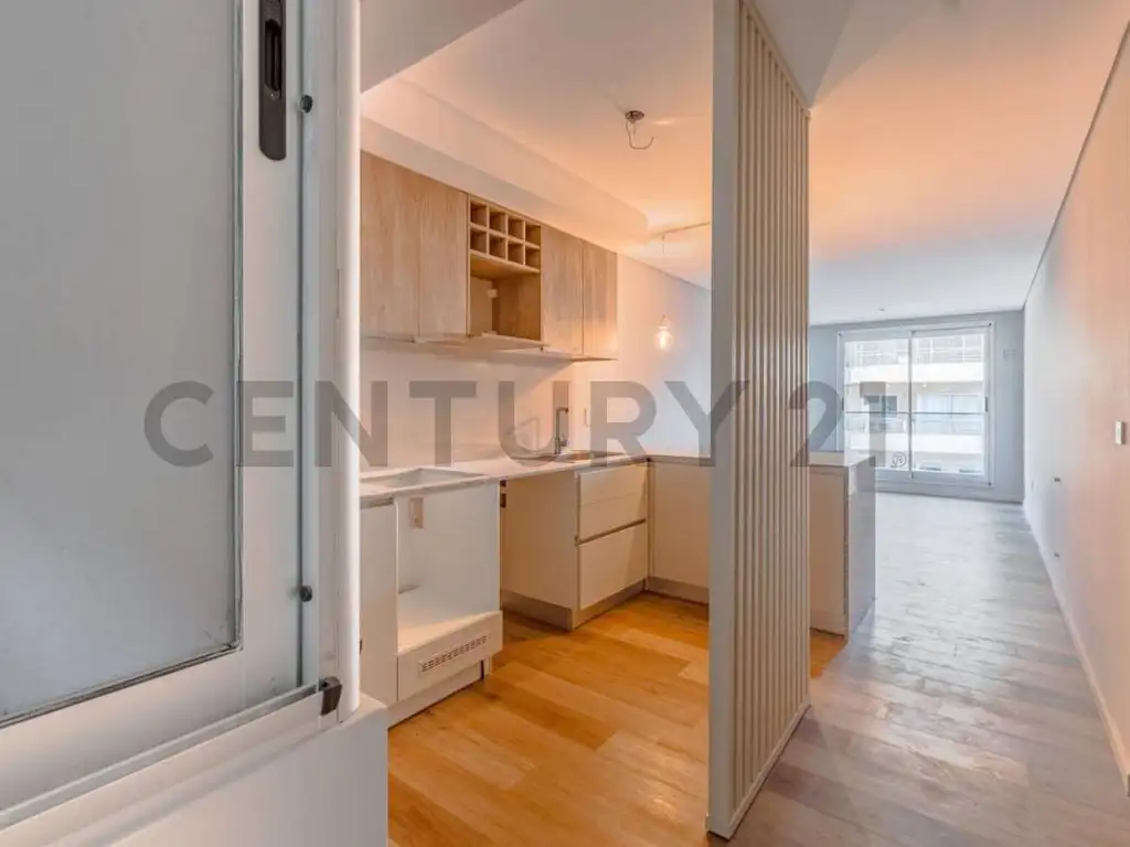 Al ingresar nos encontramos, por el lado derecho, con la cocina, el living comedor con balcón. Por el lado Izquierdo, encontramos el baño, y el dormitorio, con balcón.