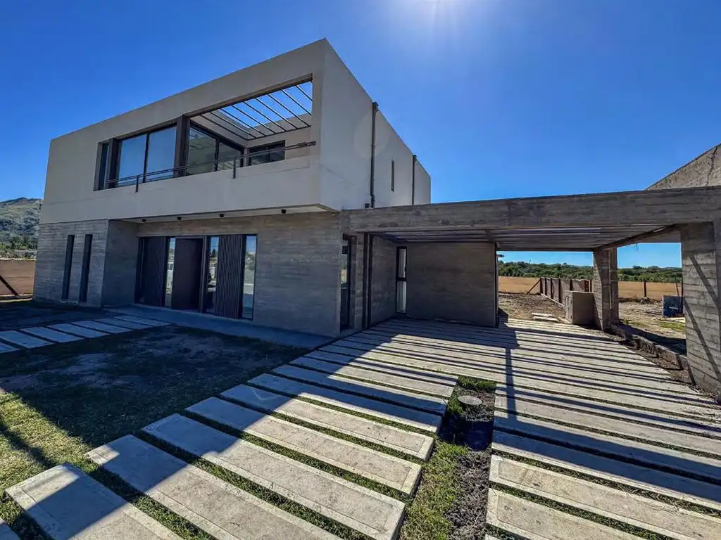 Planta Baja: Hall de acceso, estar comedor, cocina integrada con isla, toilette para visitas, lavadero con patio de servicio, cochera semicubierta para 2 autos y galería cubierta con asador.