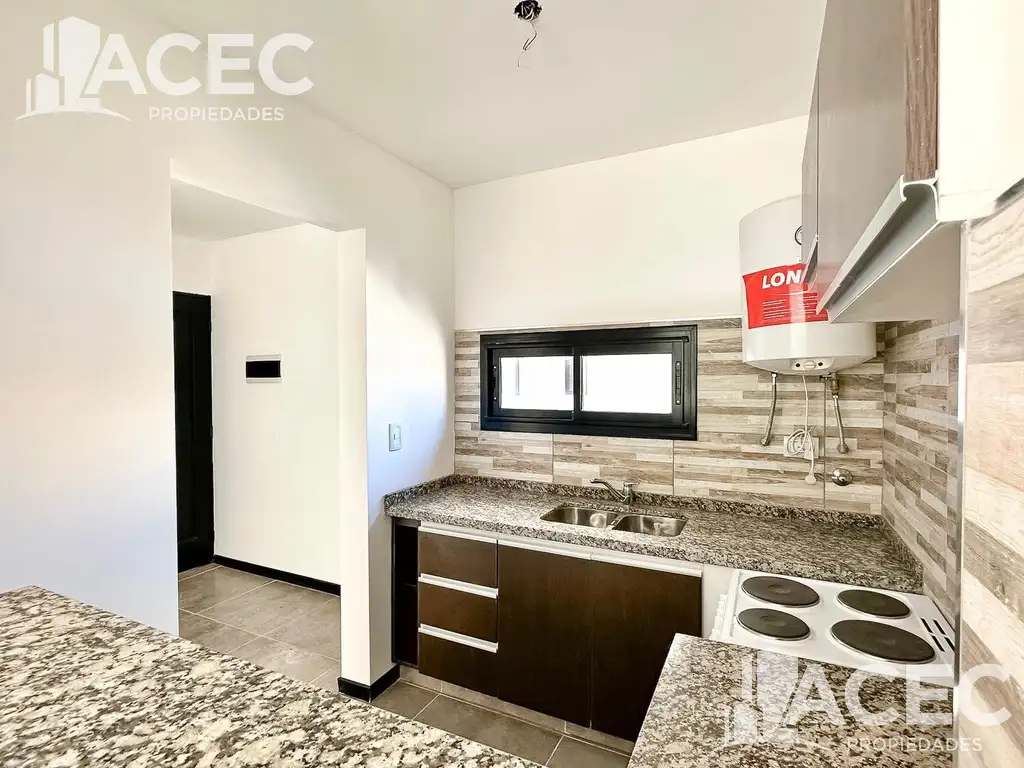 Excelente luminosidad y ventilación. Cocina completa con mesada y amoblamientos de alacena y bajo mesada. Termotanque electrico. Cocina eléctrica. Grifería y bacha de oprimera marca.