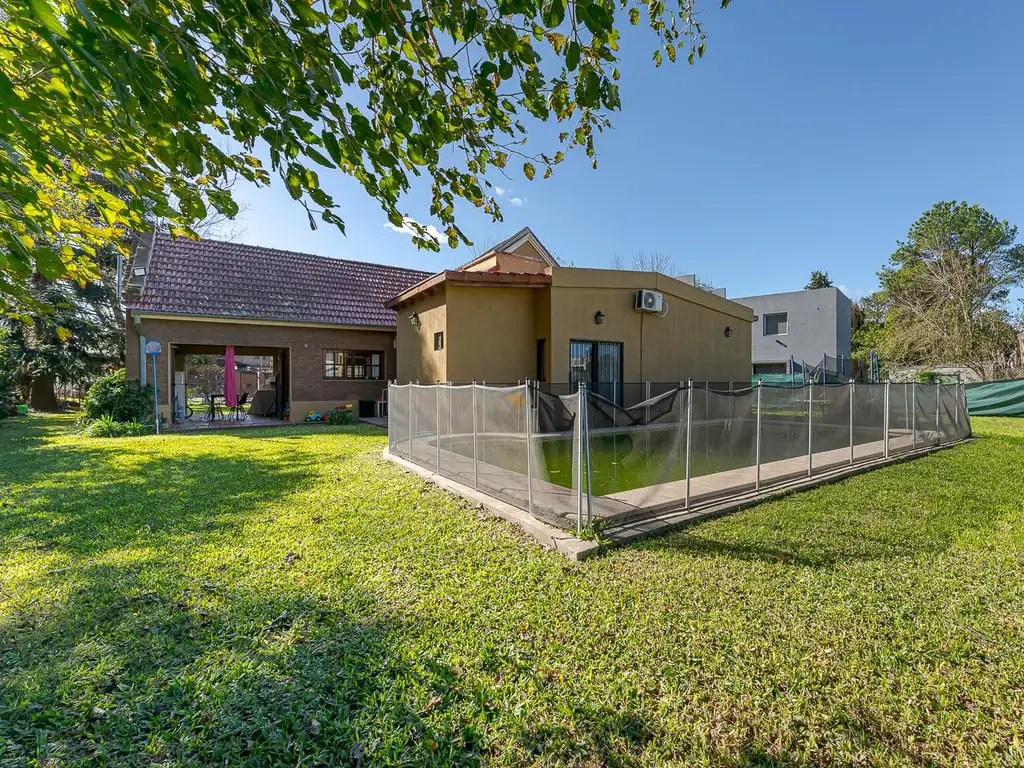 Gran espacio de jardín arbolado, pileta de material de 8m x 4m, galería techada.
