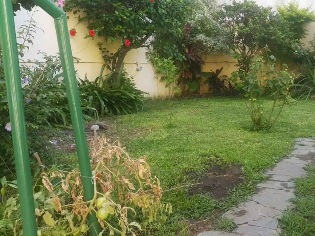Apto profesional. Apto crédito. Departamento de 4 ambientes, al contrafrente en PB. Superficie total de 200m², cubierta de 80m² y descubierta de 120m². Tres dormitorios con placard, dos baños (uno completo y un toilette). Living-comedor, cocina. Lavadero. Termotanque gas natural. Jardín.