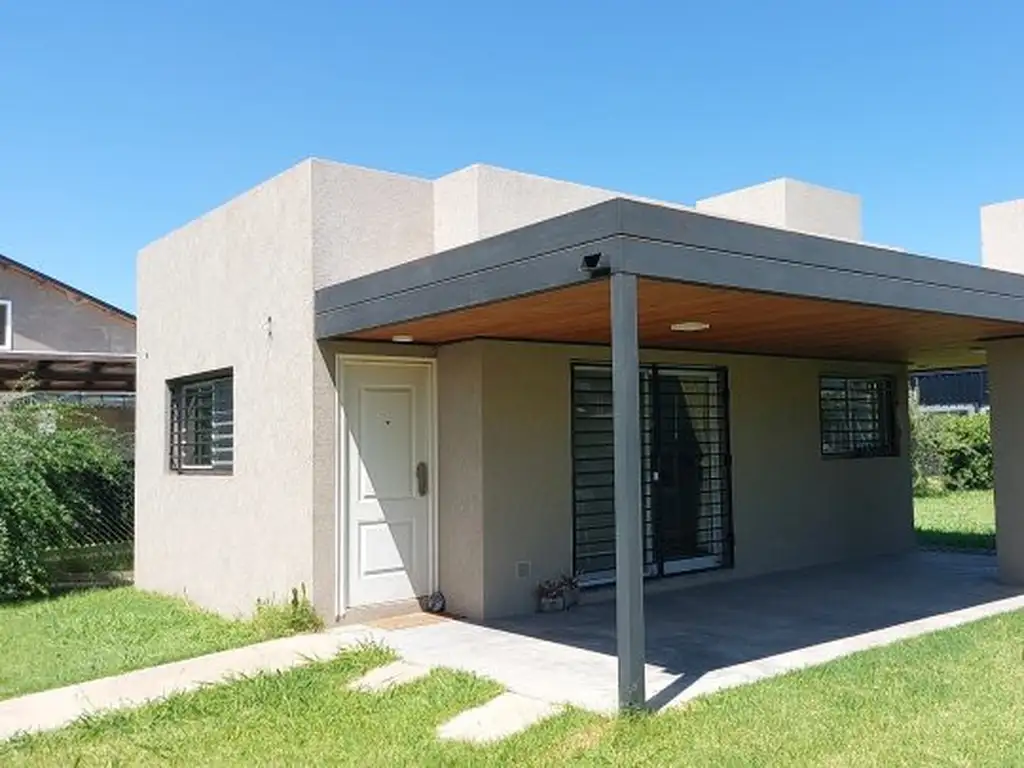 Galería cubierta con cochera y parrillero, ideal para reuniones y actividades al aire libre.
