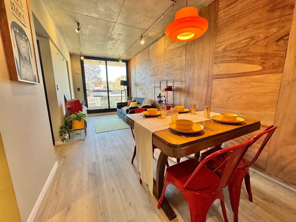 Descripción: Departamento de 1 dormitorio con pisos simil madera en todos sus ambientes. Posibilidad de calefacción por radiadores. Unidades con balcones amplios. Cocina integrada o semi sectorizada (ver imágenes). Baño completo con ducha. Dormitorio con placar. Edificio con pileta, parrillero y ducha.