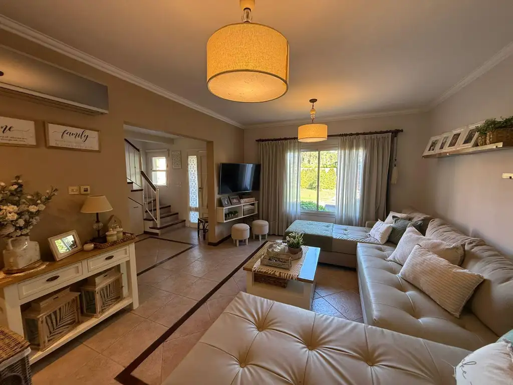 Desarrollada en dos plantas, la casa ofrece ambientes amplios y luminosos, con una distribución moderna y funcional. Cuenta con livingcomedor, cocina integrada, toilette y acceso a una galería cubierta con vista al jardín.