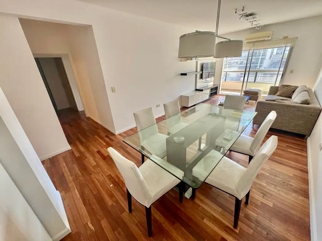 Living comedor amplio y luminoso, con piso de parquet y salida a balcón corrido con cerramiento Balconfort.