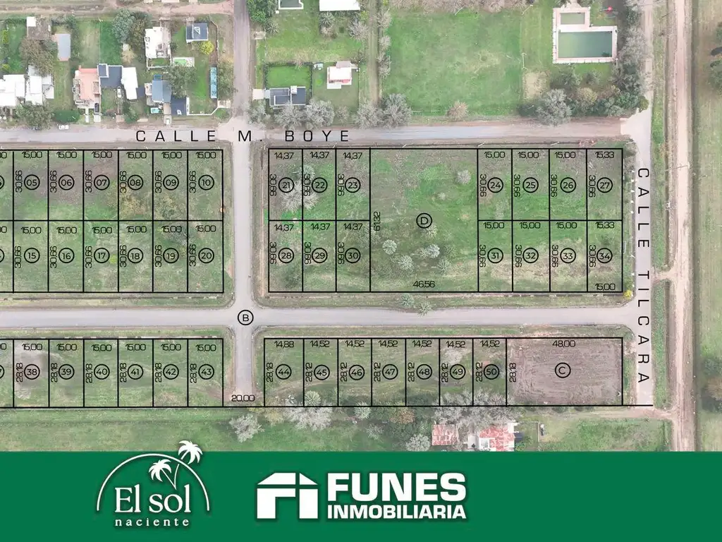 En esta oportunidad ofrecemos 50 nuevos lotes con acceso pavimentado desde la ruta 9 ( por donde pasa el transporte público), a tan solo 1 cuadra.