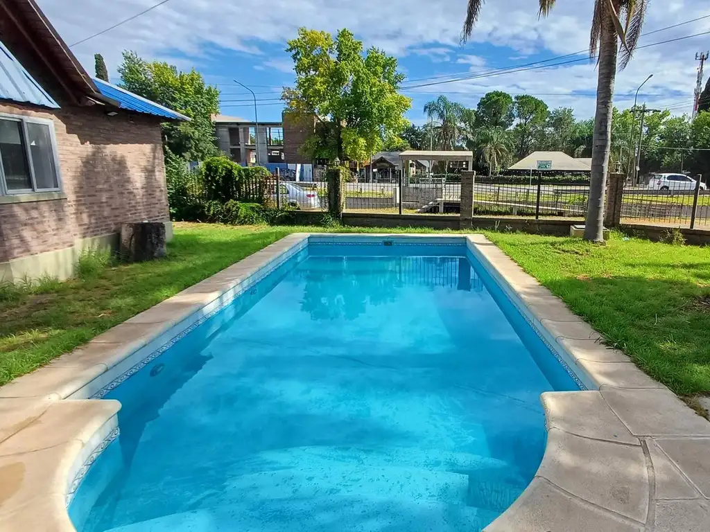 En esta ocasión te ofrecemos una propiedad de dos dormitorios emplazada en un terreno de 636 m2, ubicada sobre la colectora de la Ruta 9 frente a la parada 17. Al ingresar a la propiedad nos encontramos con un living comedor amplio, con cocina semi integrada. En la parte intima nos encontramos con 2 dormitorios y un baño. Saliendo al jardín tenemos un hermoso quincho con parrillero, cocina y un baño completo, además tenemos un hermoso parque en el cual esta la piscina de 8x4 metros.