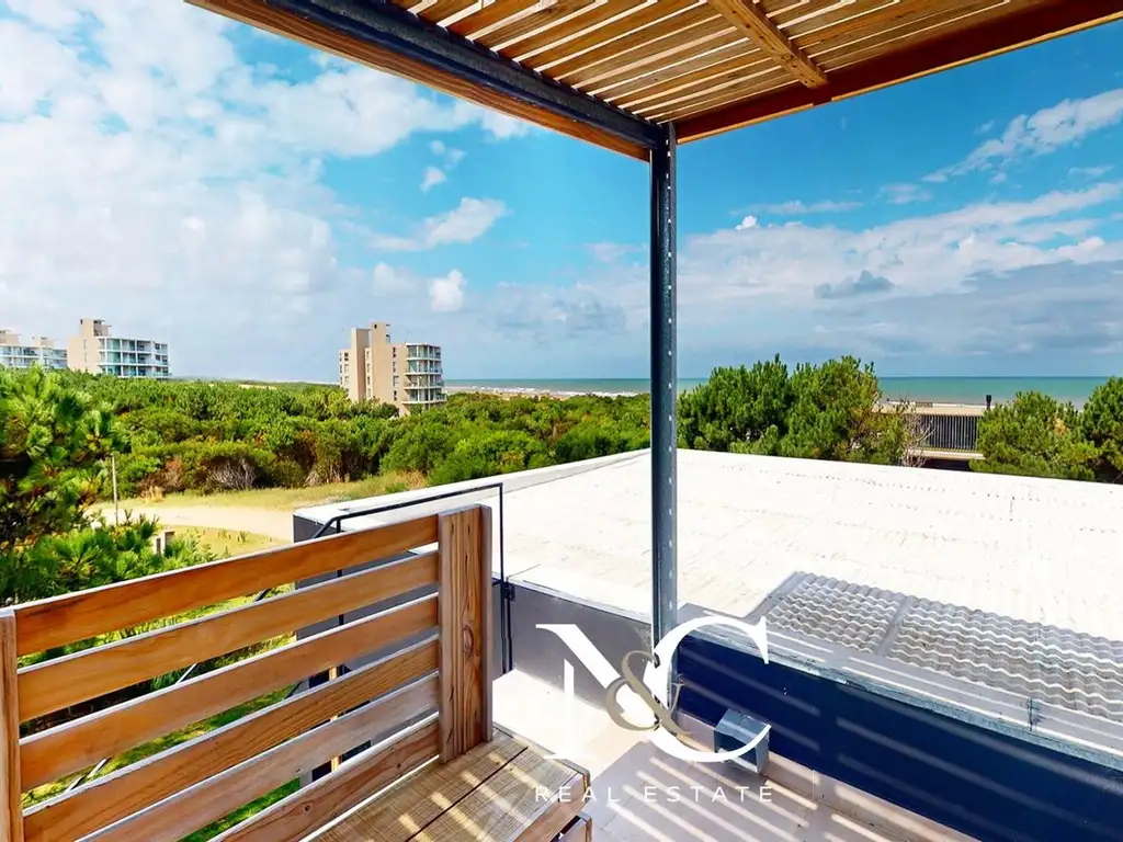 En lo más alto, una gran terraza mirador ofrece vistas abiertas y panorámicas al mar, convirtiéndose en uno de los puntos más especiales de la casa, ideal para disfrutar atardeceres, encuentros y momentos inolvidables.
