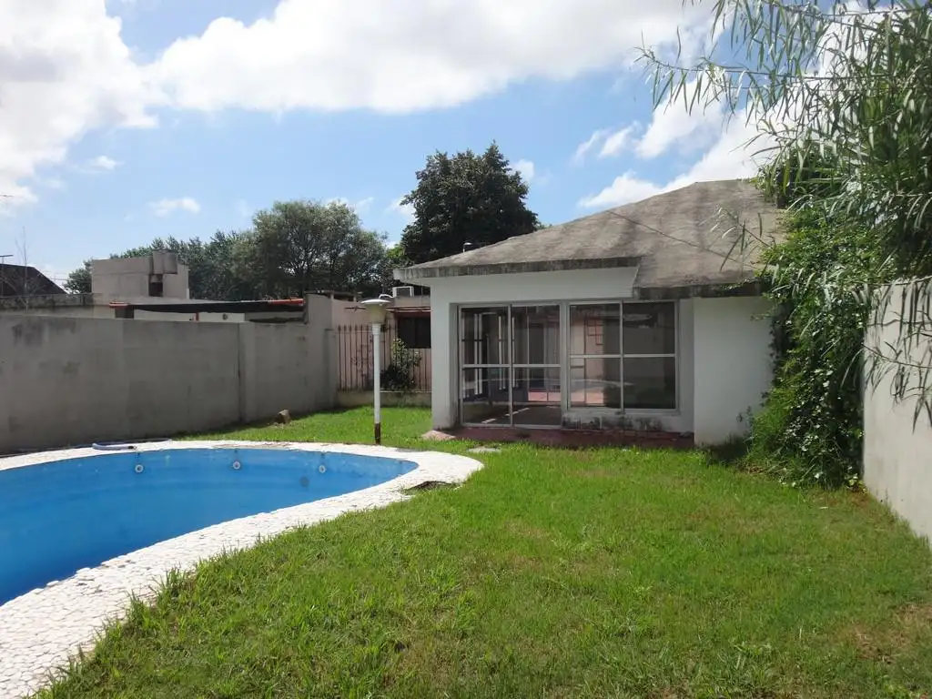 En el exterior, el extenso patio se presenta como un oasis personal, con un quincho equipado y una pileta completa, ideales para disfrutar de reuniones al aire libre o relajarse bajo el sol. Esta propiedad también ofrece una cochera, aumentando su funcionalidad.