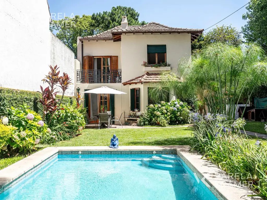 En una calle tranquila entre Libertador y Lavallol (Libertador al rio), nos encontramos con esta casa de estilo Inglés, muy acogedora, con jardín y pileta.
